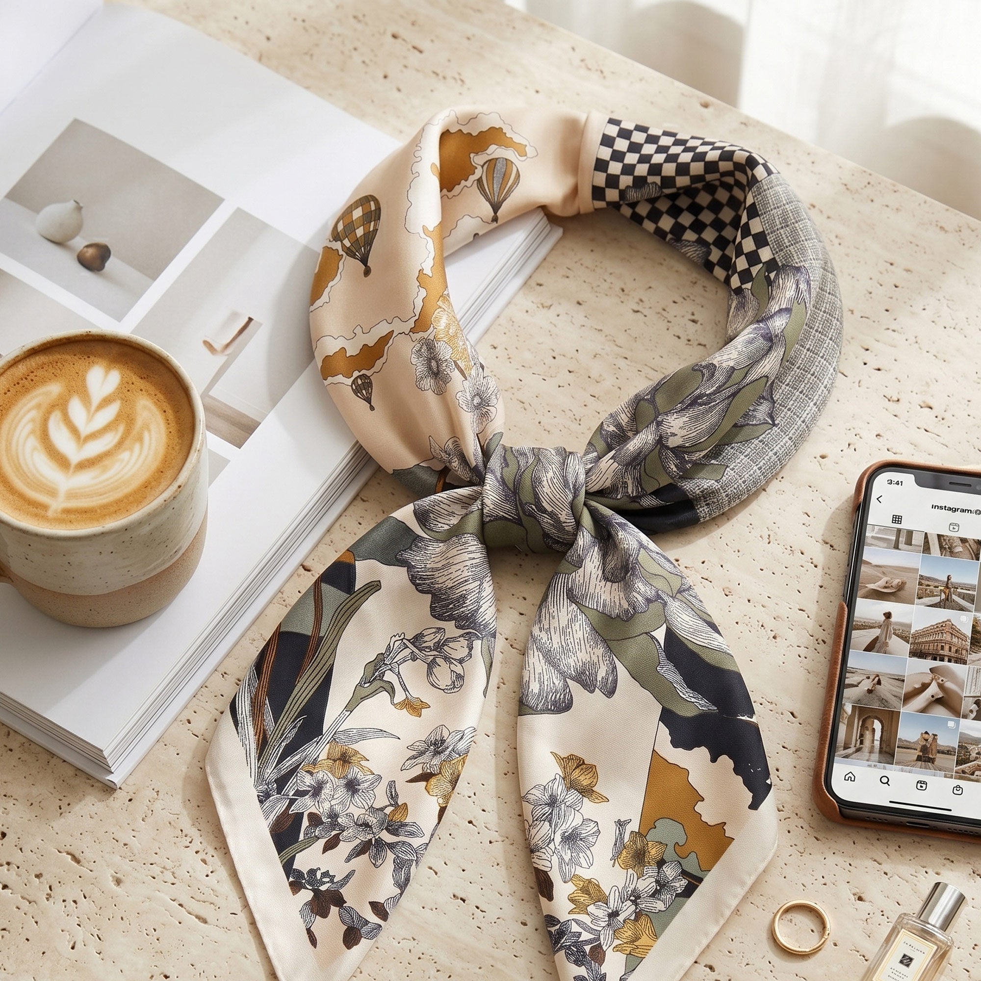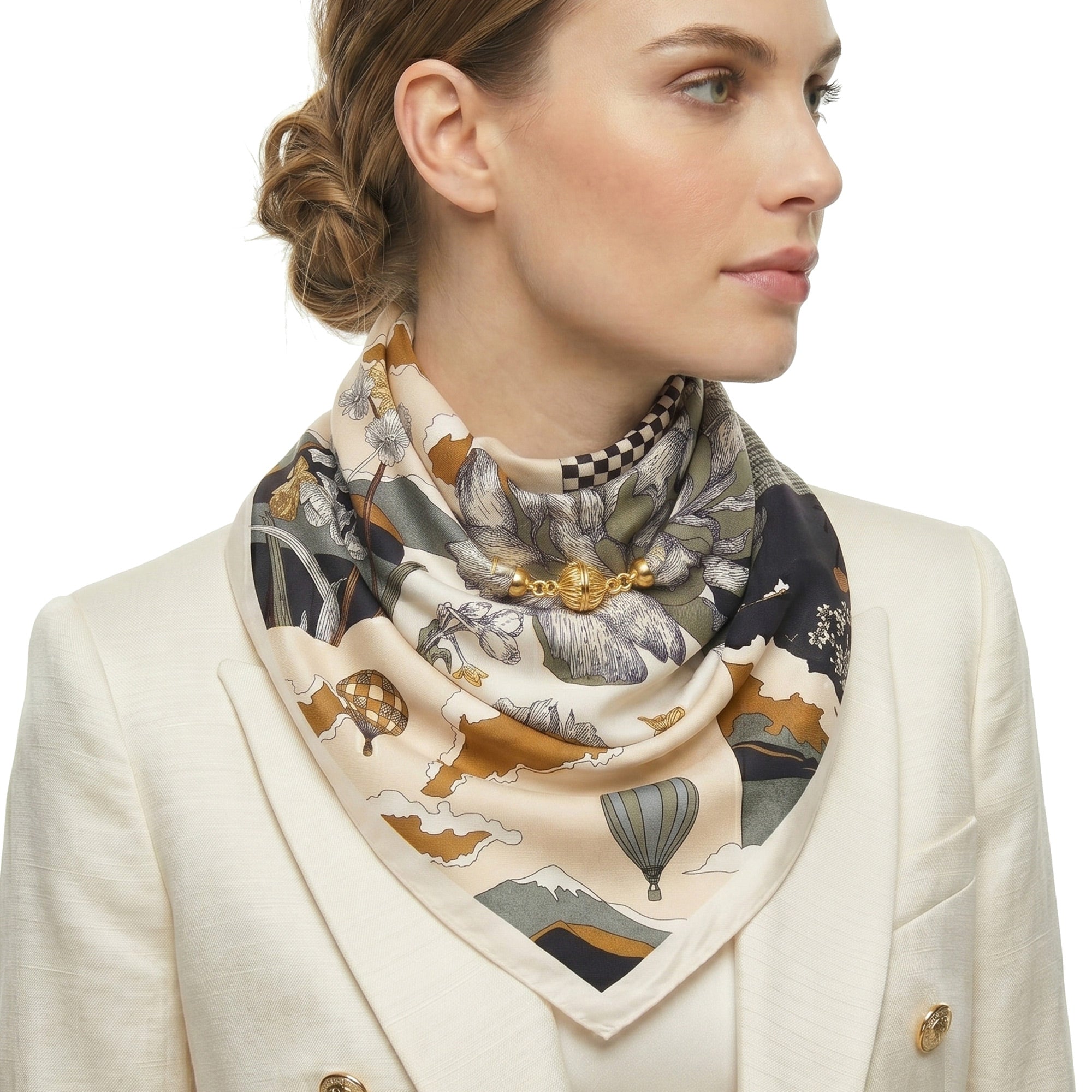 LUNA beżowa apaszka z zapięciem magnetycznym 68x68