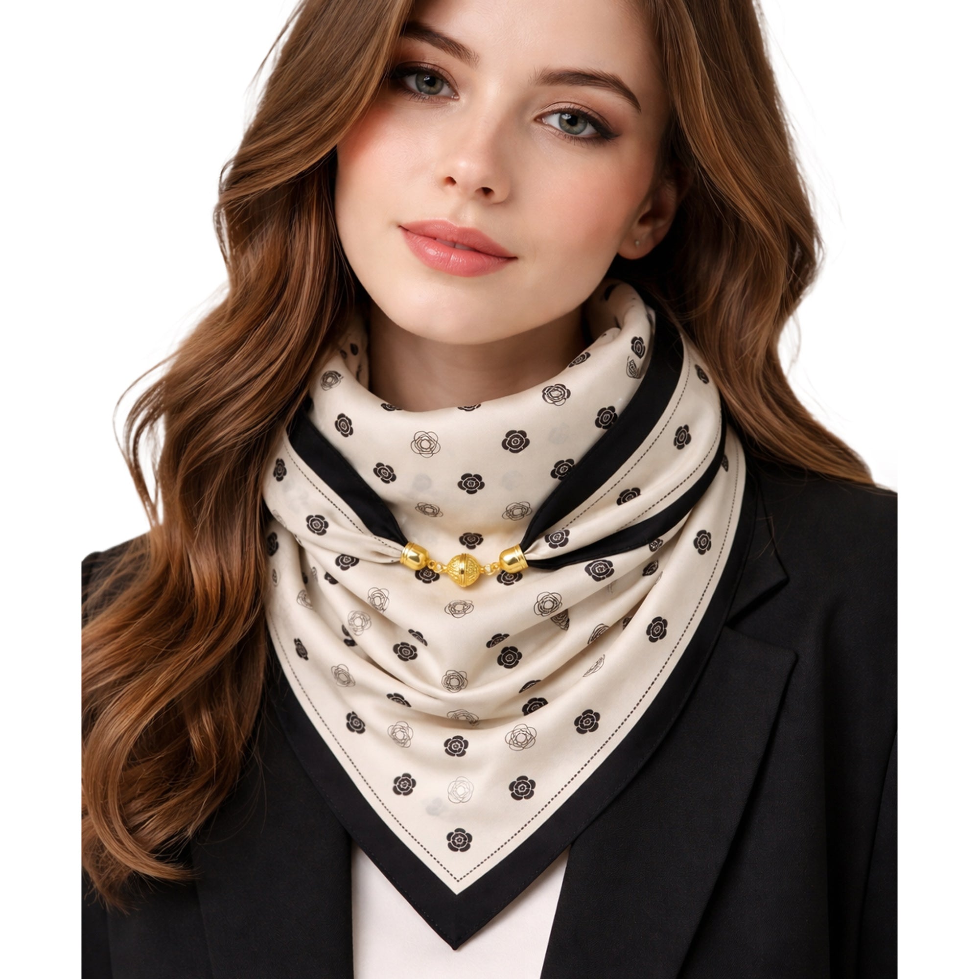 MIA beżowa apaszka damska zapięcie magnetyczne 68x68