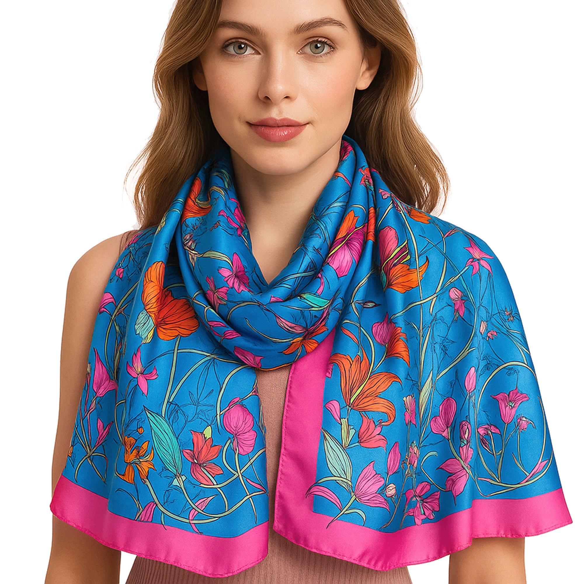 Delikatny szal damski z satyny poliestrowej łączy w sobie klasyczną elegancję z nowoczesną wygodą. Materiał, z którego jest wykonana, to satyna poliestrowa, która zapewnia nie tylko piękny, lekko połyskujący wygląd, ale również trwałość i łatwość w pielęgnacji. Jej gładka i miękka struktura delikatnie układa się na skórze, co zapewnia komfort noszenia przez cały dzień. Prostokątny kształt szala pozwala na różnorodne sposoby wiązania, czyniąc ją wszechstronnym dodatkiem do wielu stylizacji, od codziennych po wieczorowe pory.