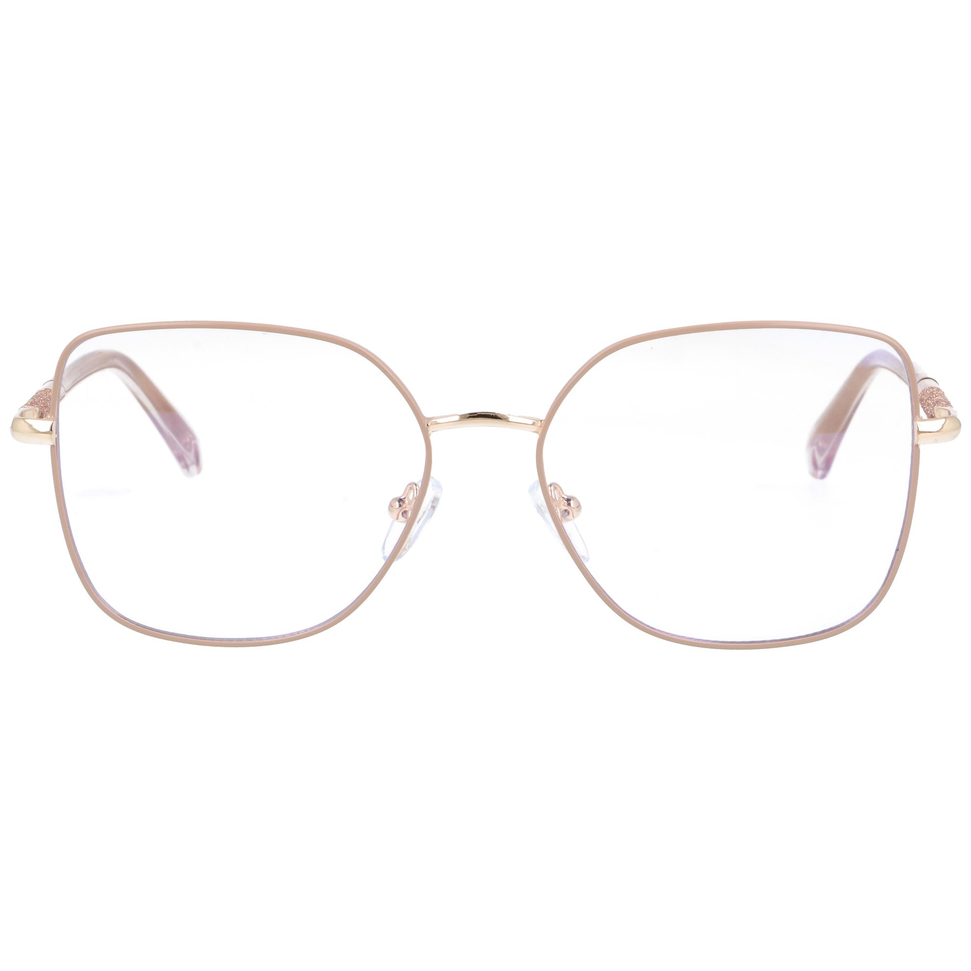 Subtelne, a zarazem eleganckie okulary o złotym kolorze przyciągają uwagę swoją delikatnością i klasą. Wyróżniają się modną, lekką konstrukcją, która zapewnia komfort noszenia przez cały dzień. Oprawki o subtelnym kształcie kwadratu dodają stylu i podkreślają kobiecość. Uzupełnione są delikatnymi akcentami na zausznikach, które wprowadzają odrobinę blasku do całego designu. Idealny wybór zarówno na co dzień, jak i na specjalne okazje, dla kobiet ceniących ponadczasowy styl z nowoczesnym twistem. Możliwość wymiany szkieł u optyka pozwala na pełne dostosowanie oprawek do indywidualnych potrzeb.