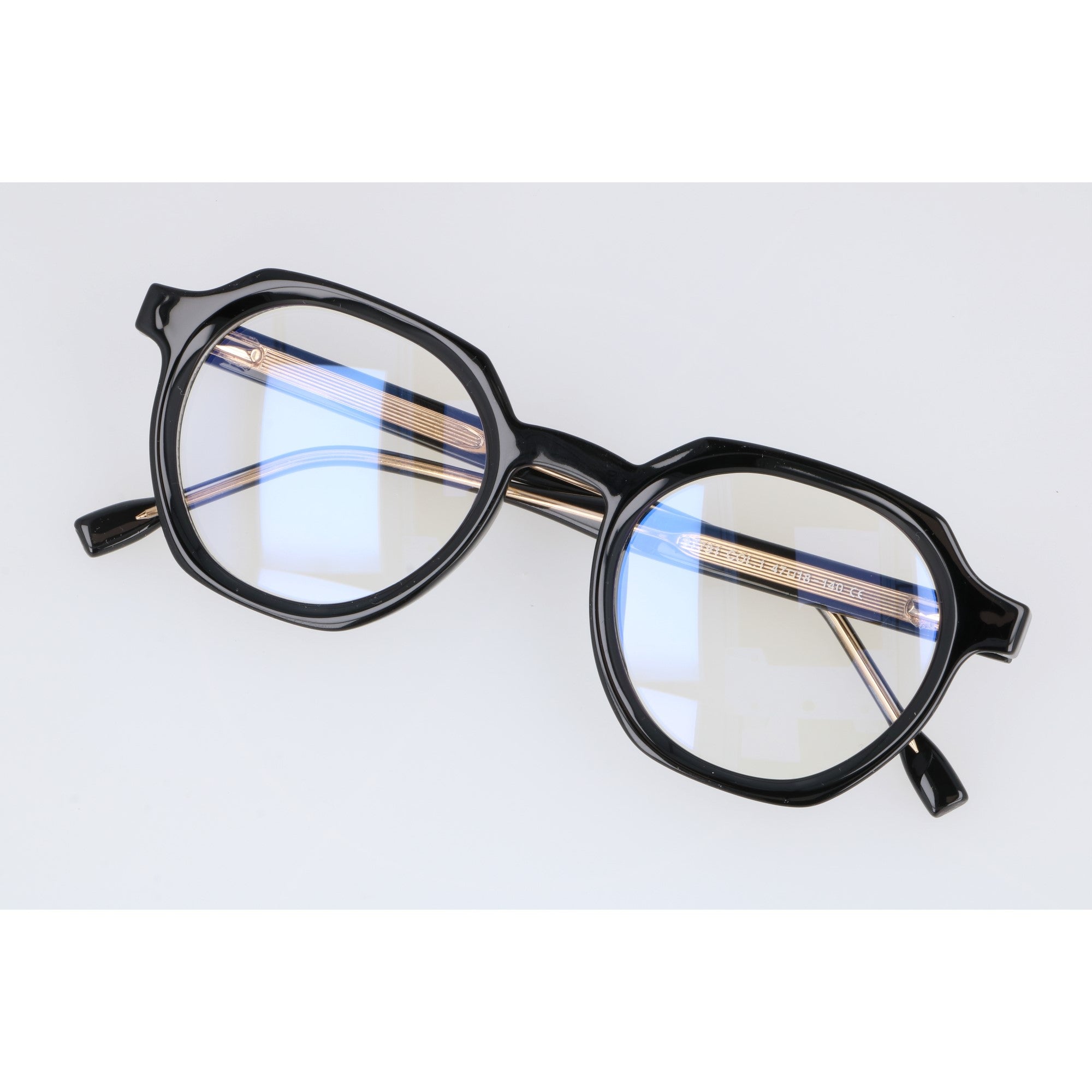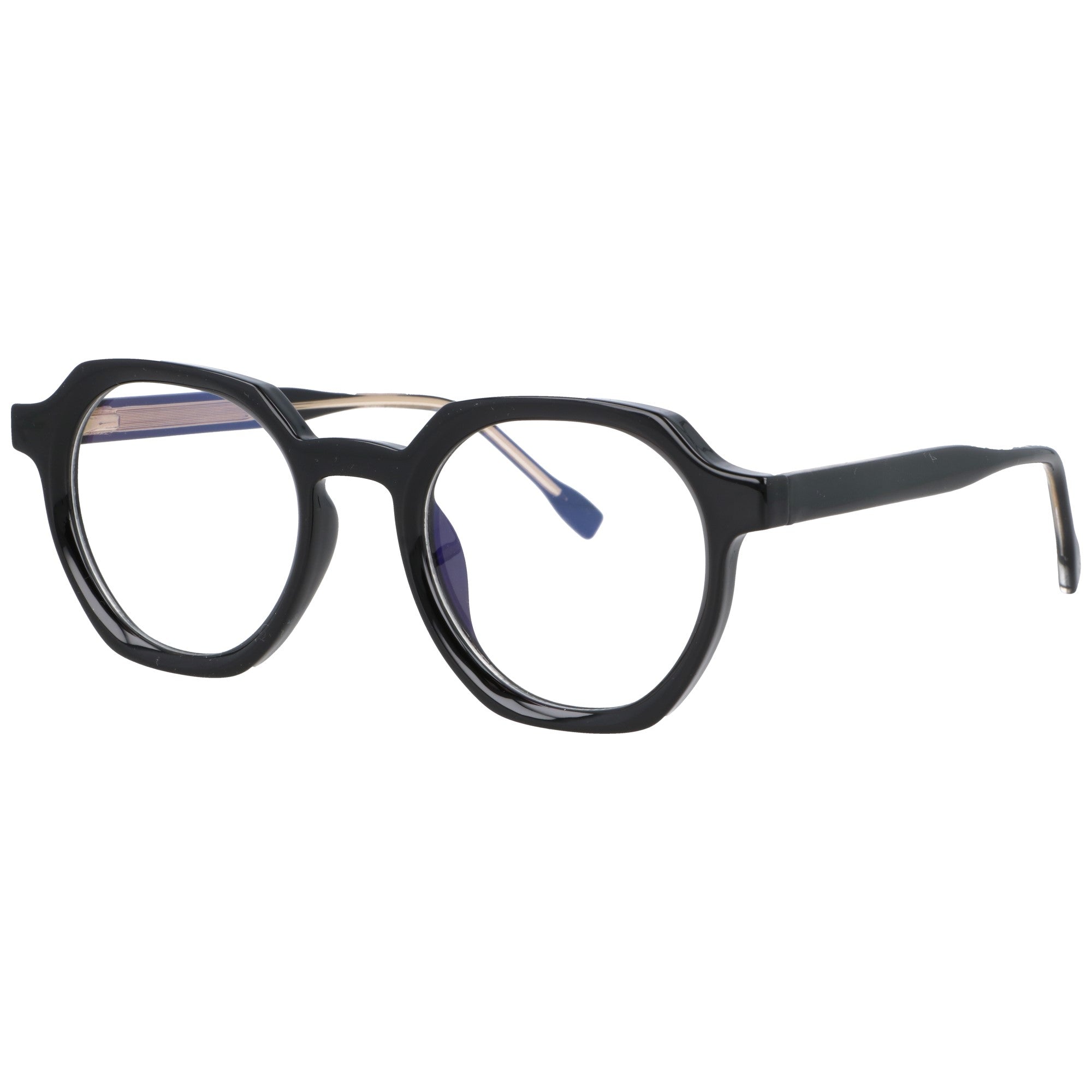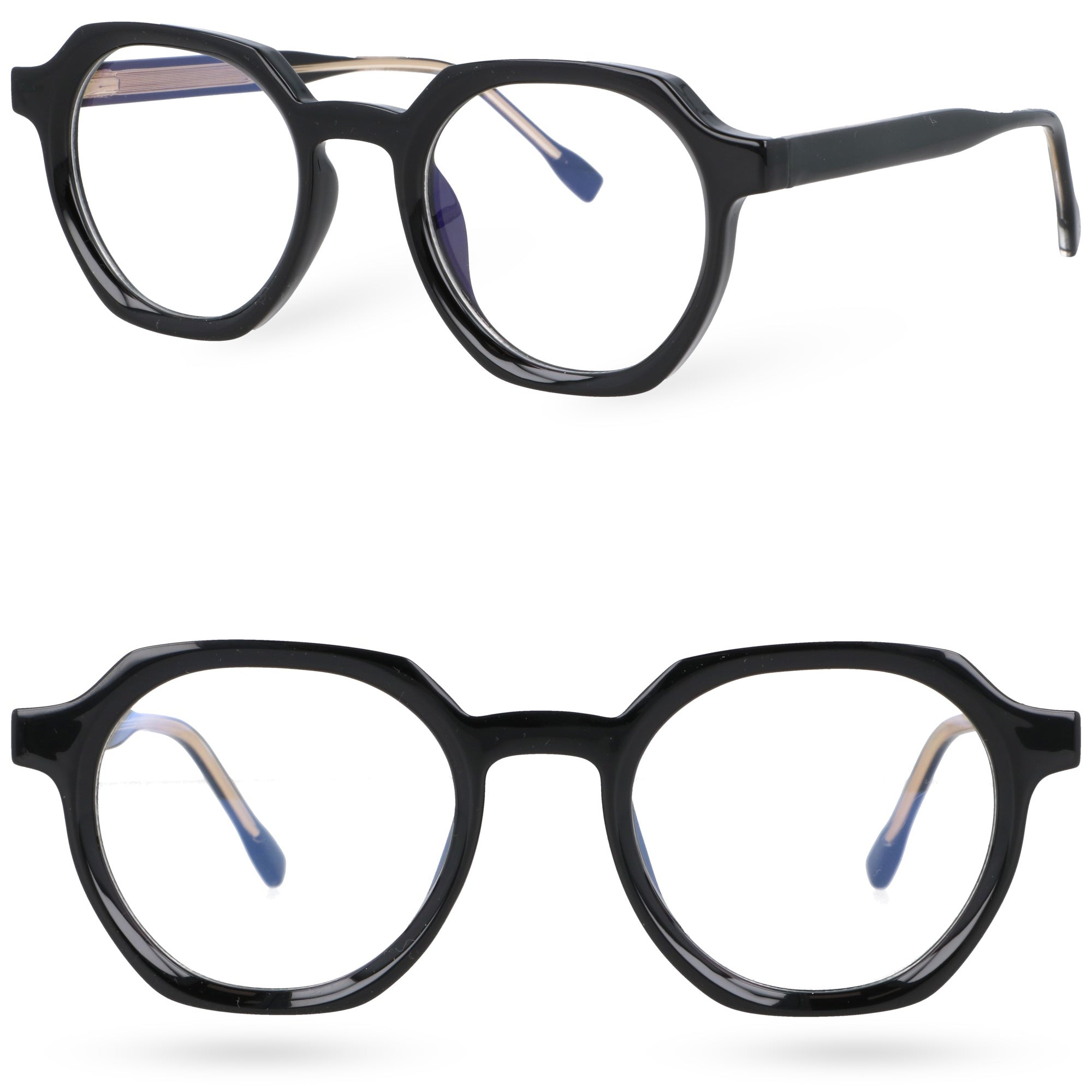 Okulary zerówki z filtrem BlueLight – model unisex Stylowe i wyraziste okulary zerówki, zaprojektowane z myślą o kobietach i mężczyznach, którzy cenią nowoczesną formę z nutą intelektualnej elegancji. Unikalny, geometryczny kształt oprawek łączy klasyczne, okrągłe linie z modnym wykończeniem, tworząc design, który wyróżnia się w tłumie. Wykonane z błyszczącego, wysokiej jakości tworzywa, z wtopionymi metalowymi okuciami dla większej trwałości i stylowego akcentu. Zawiasy typu flex sprawiają, że okulary idealnie dopasowują się do kształtu głowy, zapewniając komfort przez cały dzień. Soczewki wyposażone są w filtr BlueLight, który chroni oczy przed szkodliwym światłem niebieskim emitowanym przez ekrany – to idealny wybór dla osób pracujących przy komputerze, uczących się lub spędzających wiele czasu online.