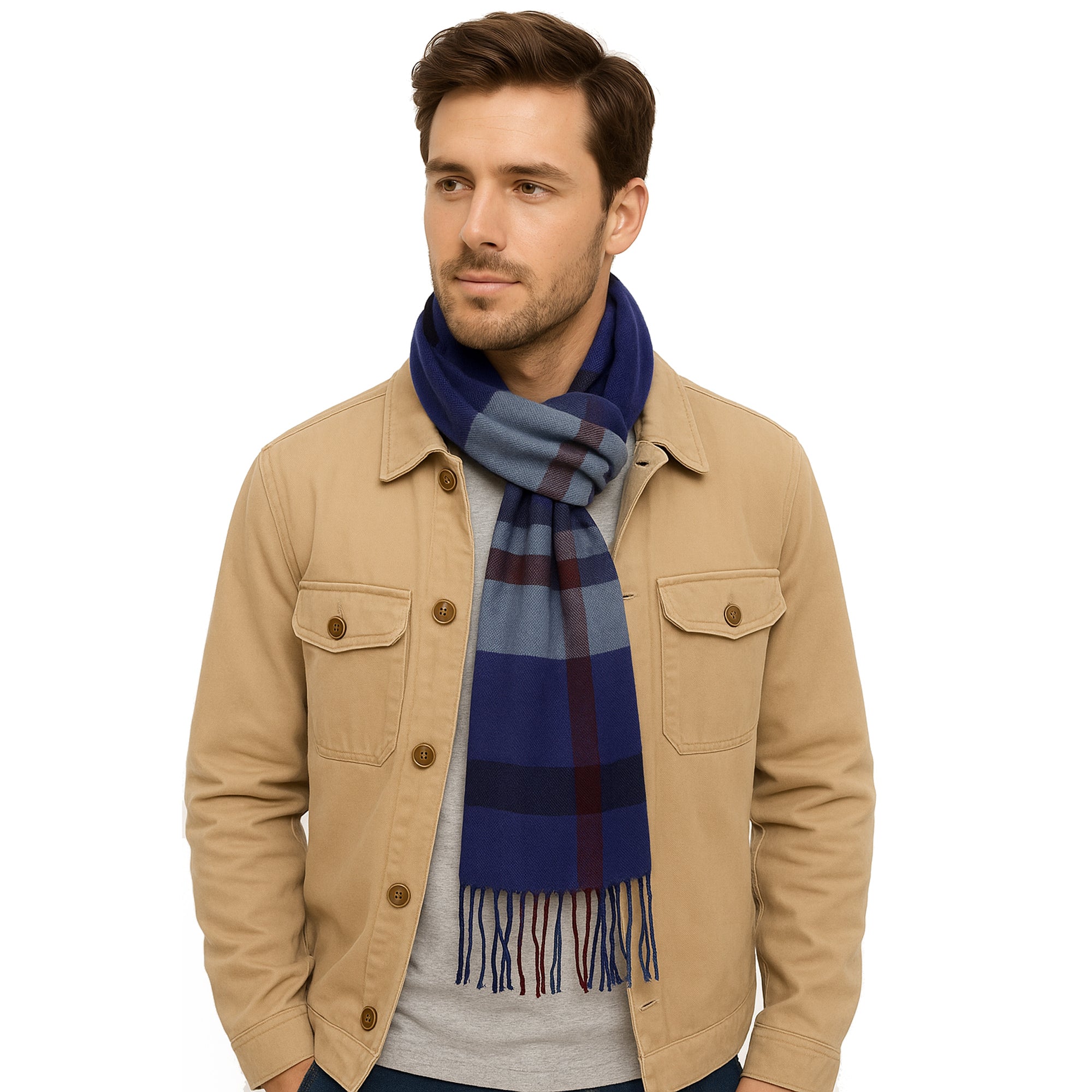 Męski szal o klasycznym kroju i eleganckim charakterze to idealny dodatek na chłodniejsze dni. Wykonany z wysokiej jakości mieszanki 20% bawełny i 80% wiskozy, jest lekki, przyjemny w dotyku i zapewnia komfort noszenia. Szal ma wymiary 190 × 33 cm, dzięki czemu można go swobodnie wiązać na różne sposoby. Wykończony został ozdobnymi frędzlami o długości 9 cm, które dodają mu klasycznego, ponadczasowego stylu. Uniwersalny design sprawia, że doskonale komponuje się zarówno z eleganckim płaszczem, jak i bardziej casualową kurtką, podkreślając męską stylizację w stylowy sposób.