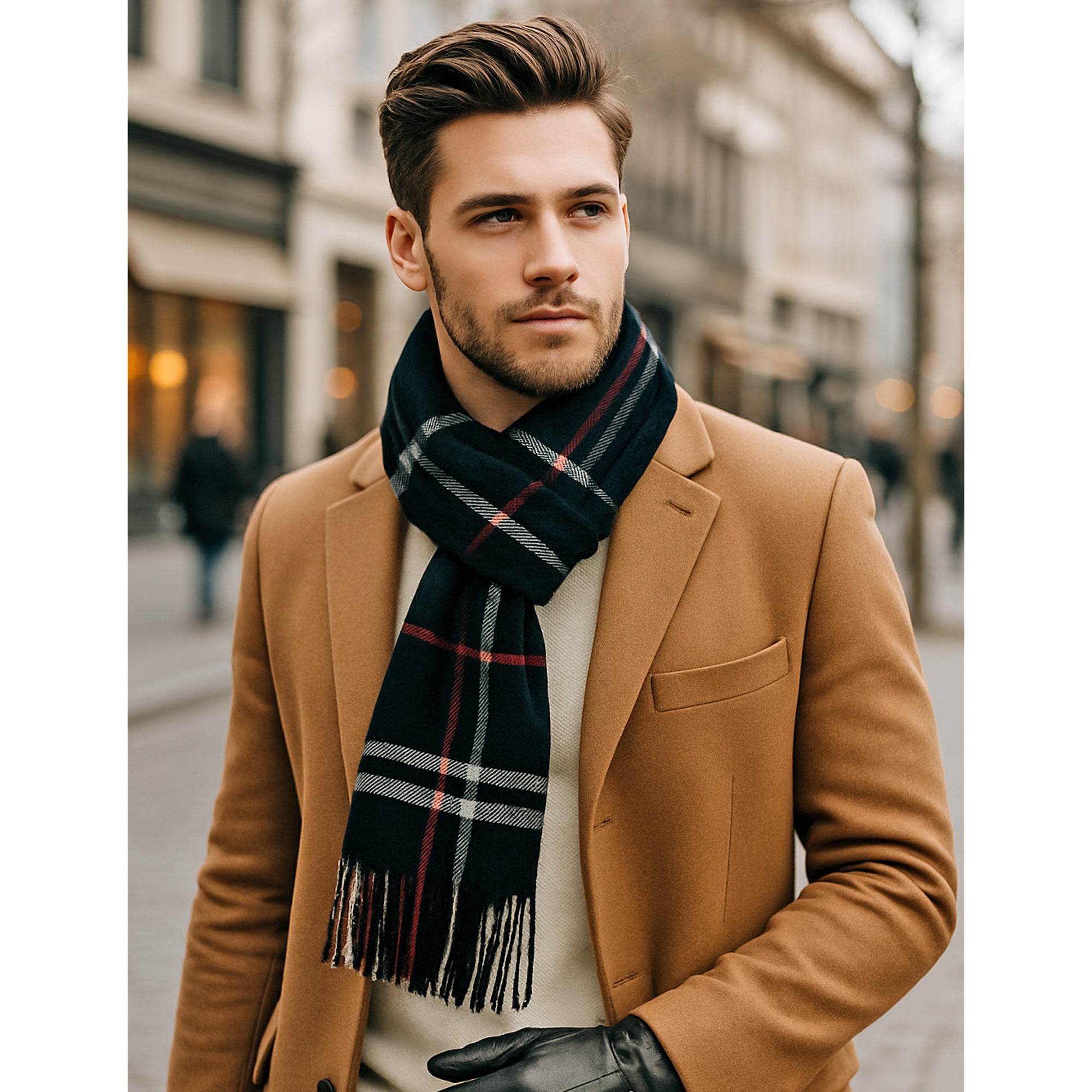 Stylowy dodatek, który łączy klasykę z nowoczesnym charakterem. Ten męski szal w ponadczasową kratę to idealny wybór dla ceniących elegancję i wygodę. Został przełamany subtelnym czerwonym akcentem, który dodaje całości wyrazistości. Miękki i przyjemny w dotyku materiał otula szyję, zapewniając komfort i ciepło w chłodniejsze dni. Długie frędzle podkreślają swobodny, lekko casualowy charakter, dzięki czemu szal sprawdzi się zarówno w miejskich stylizacjach, jak i w bardziej formalnych zestawach z płaszczem czy marynarką. Ten szal to uniwersalny element garderoby, który nada każdemu outfitowi szyku.