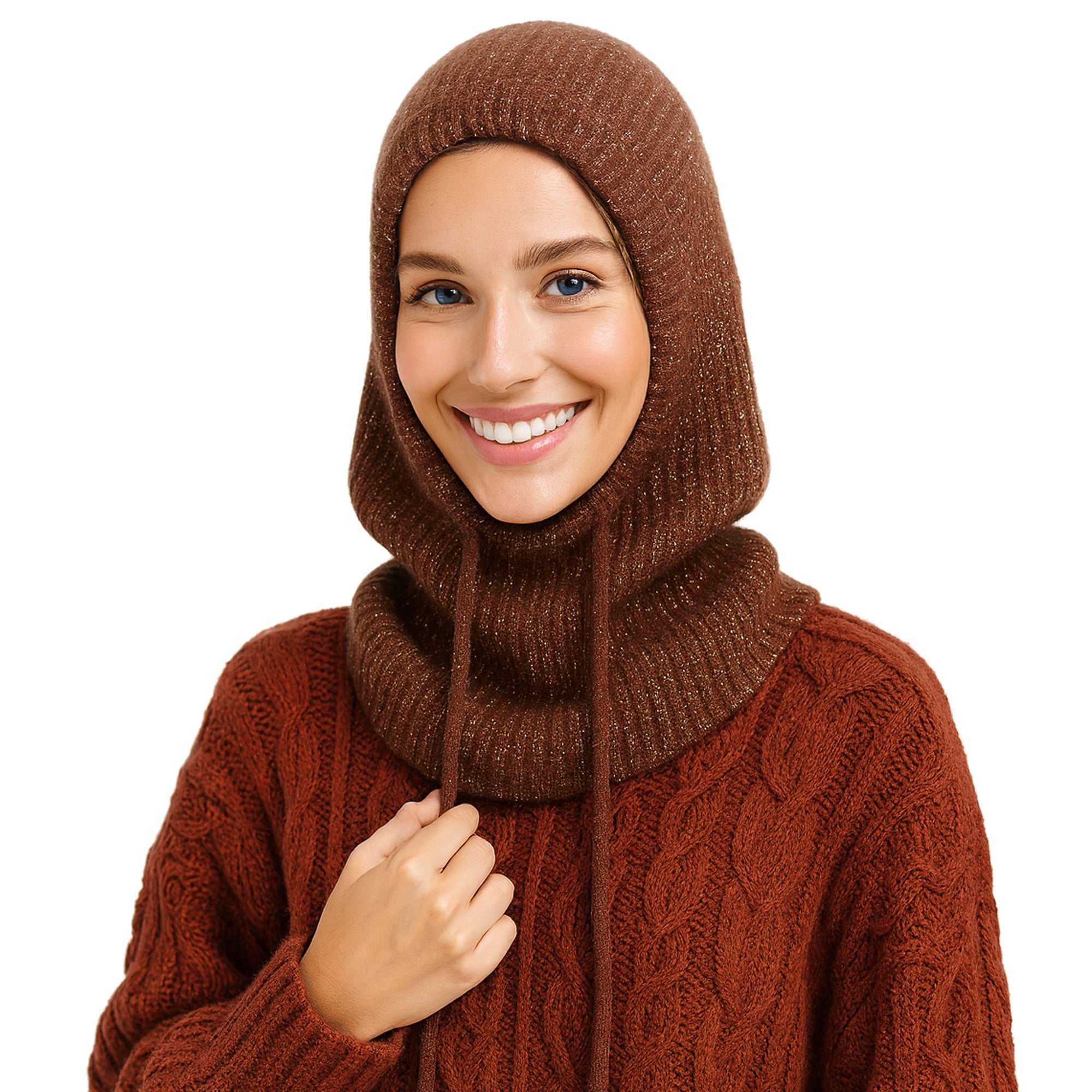 Stylowa balaclava to idealne połączenie modnego designu i funkcjonalności. Wykonana z miękkiej, elastycznej dzianiny o prążkowanej strukturze, doskonale dopasowuje się do kształtu głowy, zapewniając ciepło i wygodę podczas chłodniejszych dni. Dodatkową ozdobą jest wszyta w materiał nić w zależności od koloru (złota, srebrna lub czarna). Model z obszernym kapturem i sznurkami do regulacji można nosić na wiele sposobów – jako kaptur, komin lub osłonę szyi. Balaclava świetnie sprawdzi się zarówno w miejskich stylizacjach, jak i podczas zimowych spacerów. Cechy produktu: Typ: balaclava / kaptur / komin Miękka, elastyczna dzianina o prążkowanej fakturze oraz wszyta w zależności od koloru (złota, srebrna, czarna) nić w materiał jako ozdoba Regulacja za pomocą troczków Uniwersalny rozmiar, idealne dopasowanie Ciepła, modna i praktyczna Skład: 75% Wiskoza, 25% kaszmir Wymiary: 46x27 cm To must-have sezonu zimowego – dodatek, który łączy nowoczesny styl z komfortem i ochroną przed chłodem.