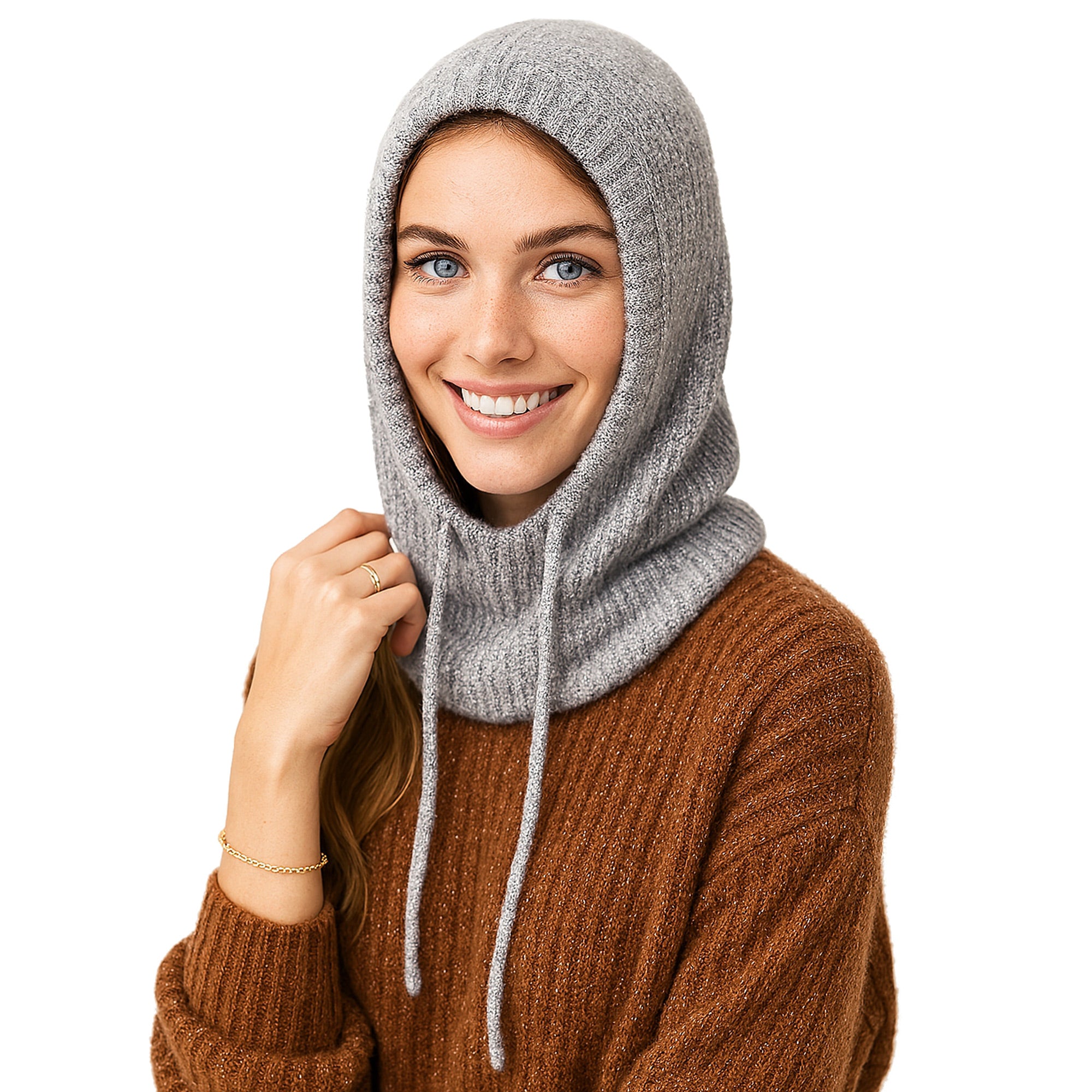 Stylowa balaclava to idealne połączenie modnego designu i funkcjonalności. Wykonana z miękkiej, elastycznej dzianiny o prążkowanej strukturze, doskonale dopasowuje się do kształtu głowy, zapewniając ciepło i wygodę podczas chłodniejszych dni. Dodatkową ozdobą jest wszyta w materiał nić w zależności od koloru (złota, srebrna lub czarna). Model z obszernym kapturem i sznurkami do regulacji można nosić na wiele sposobów – jako kaptur, komin lub osłonę szyi. Balaclava świetnie sprawdzi się zarówno w miejskich stylizacjach, jak i podczas zimowych spacerów. Cechy produktu: Typ: balaclava / kaptur / komin Miękka, elastyczna dzianina o prążkowanej fakturze oraz wszyta w zależności od koloru (złota, srebrna, czarna) nić w materiał jako ozdoba Regulacja za pomocą troczków Uniwersalny rozmiar, idealne dopasowanie Ciepła, modna i praktyczna Skład: 75% Wiskoza, 25% kaszmir Wymiary: 46x27 cm To must-have sezonu zimowego – dodatek, który łączy nowoczesny styl z komfortem i ochroną przed chłodem.