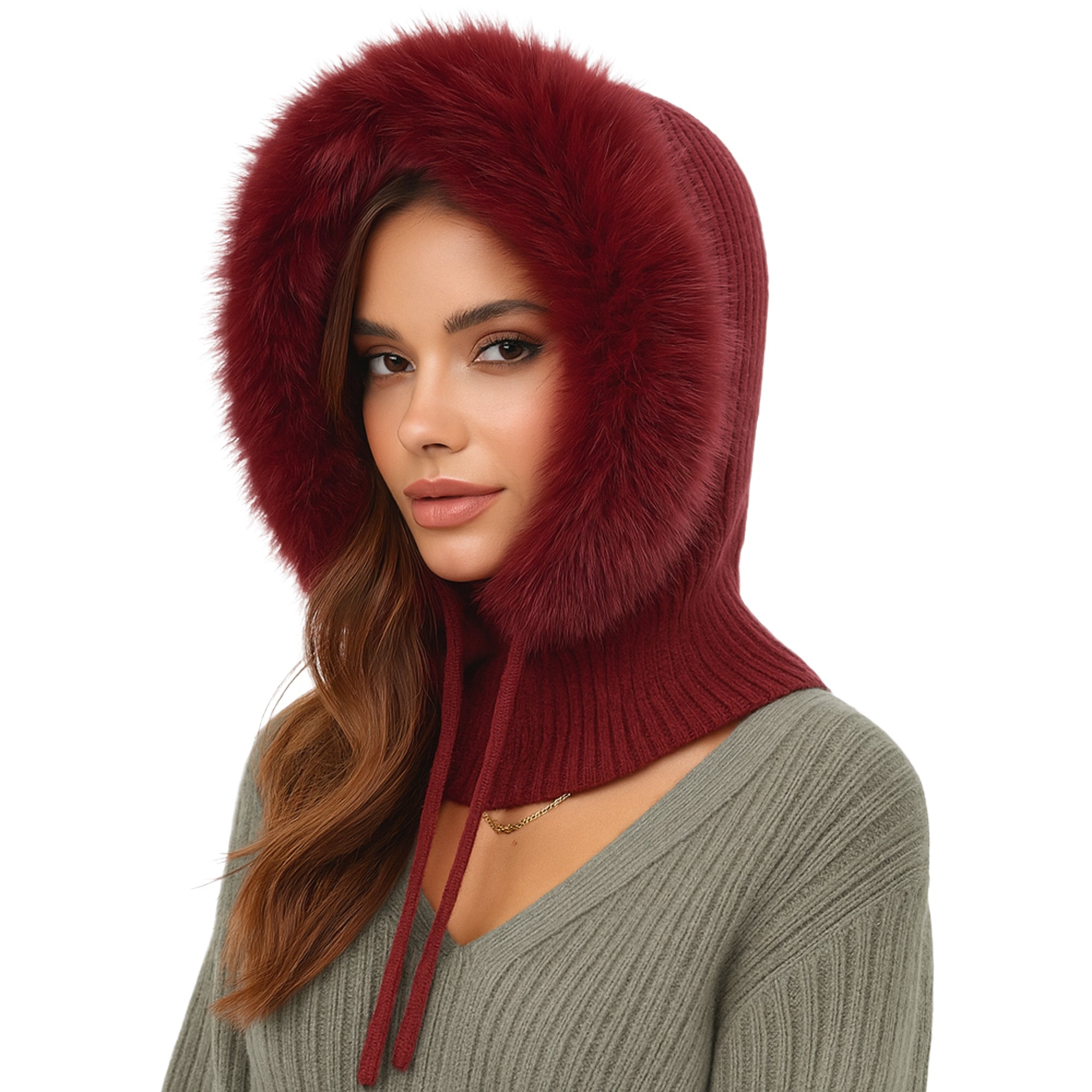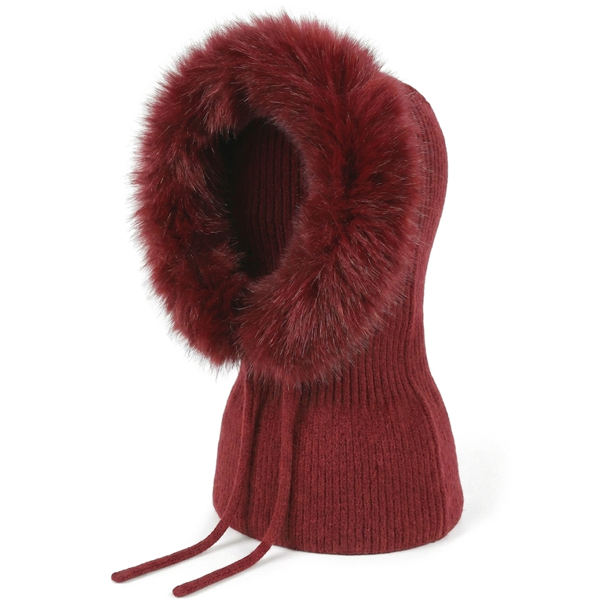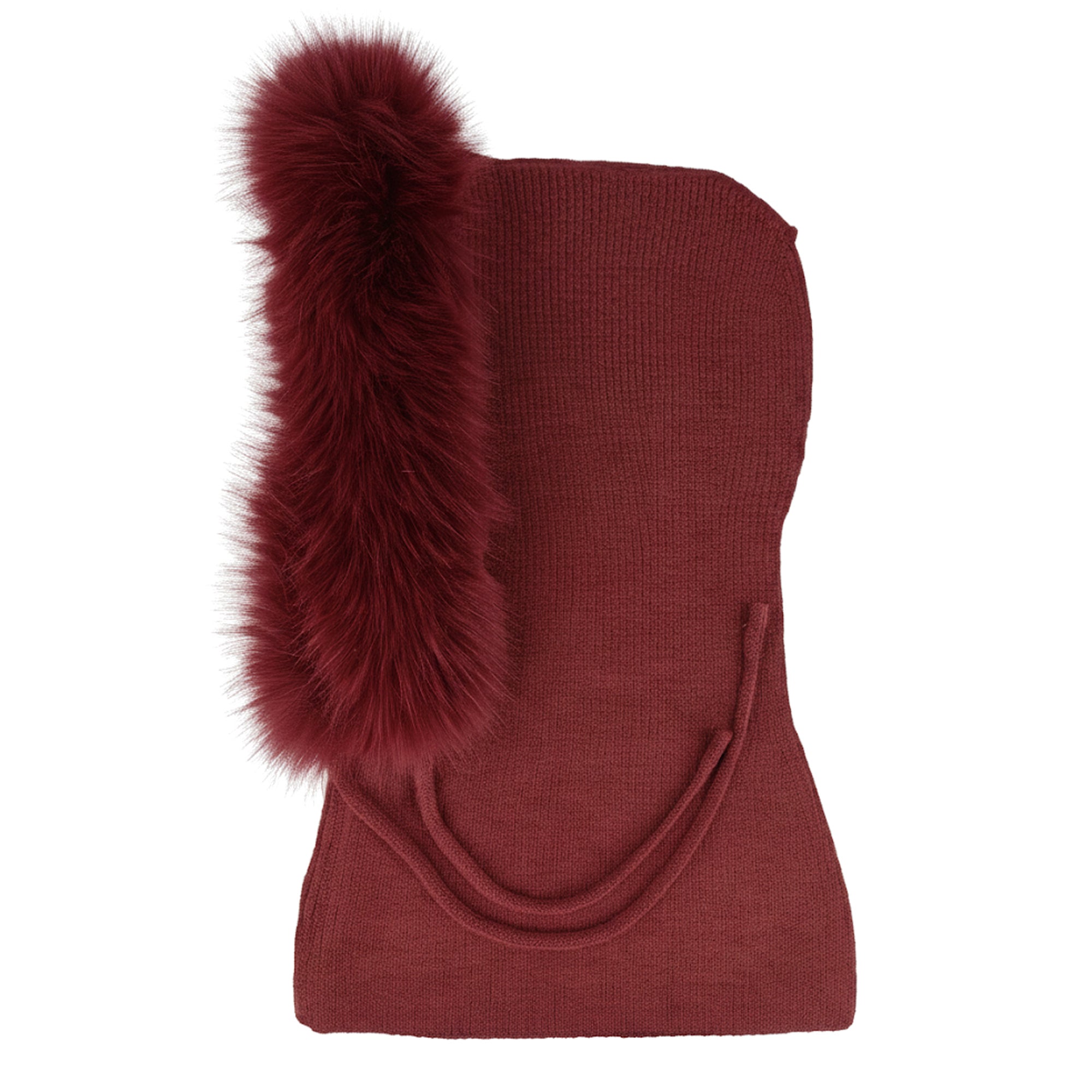 BORDOWY KAPTUR komin BALACLAVA z FUTERKIEM kominiarka CZAPKA damska