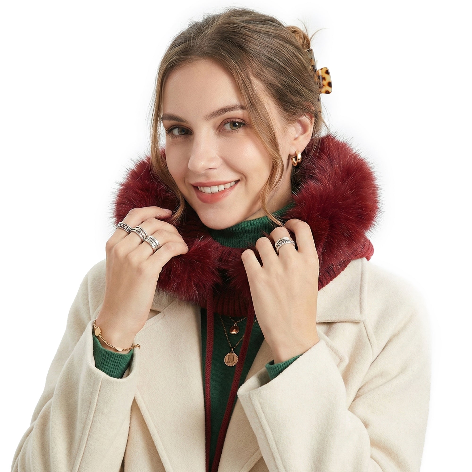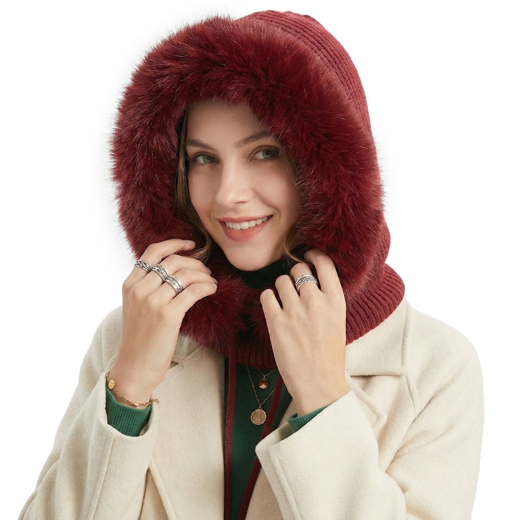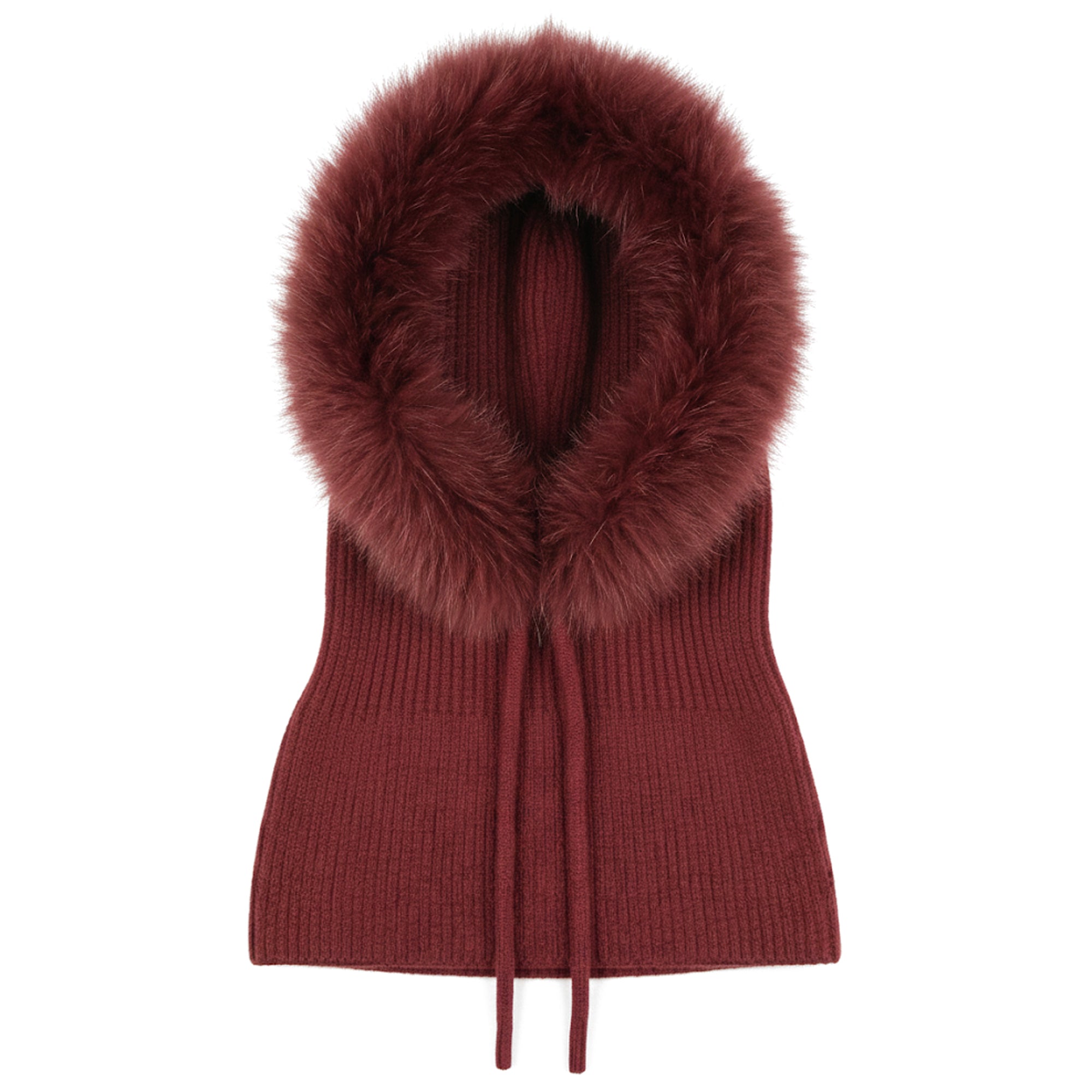 BORDOWY KAPTUR komin BALACLAVA z FUTERKIEM kominiarka CZAPKA damska