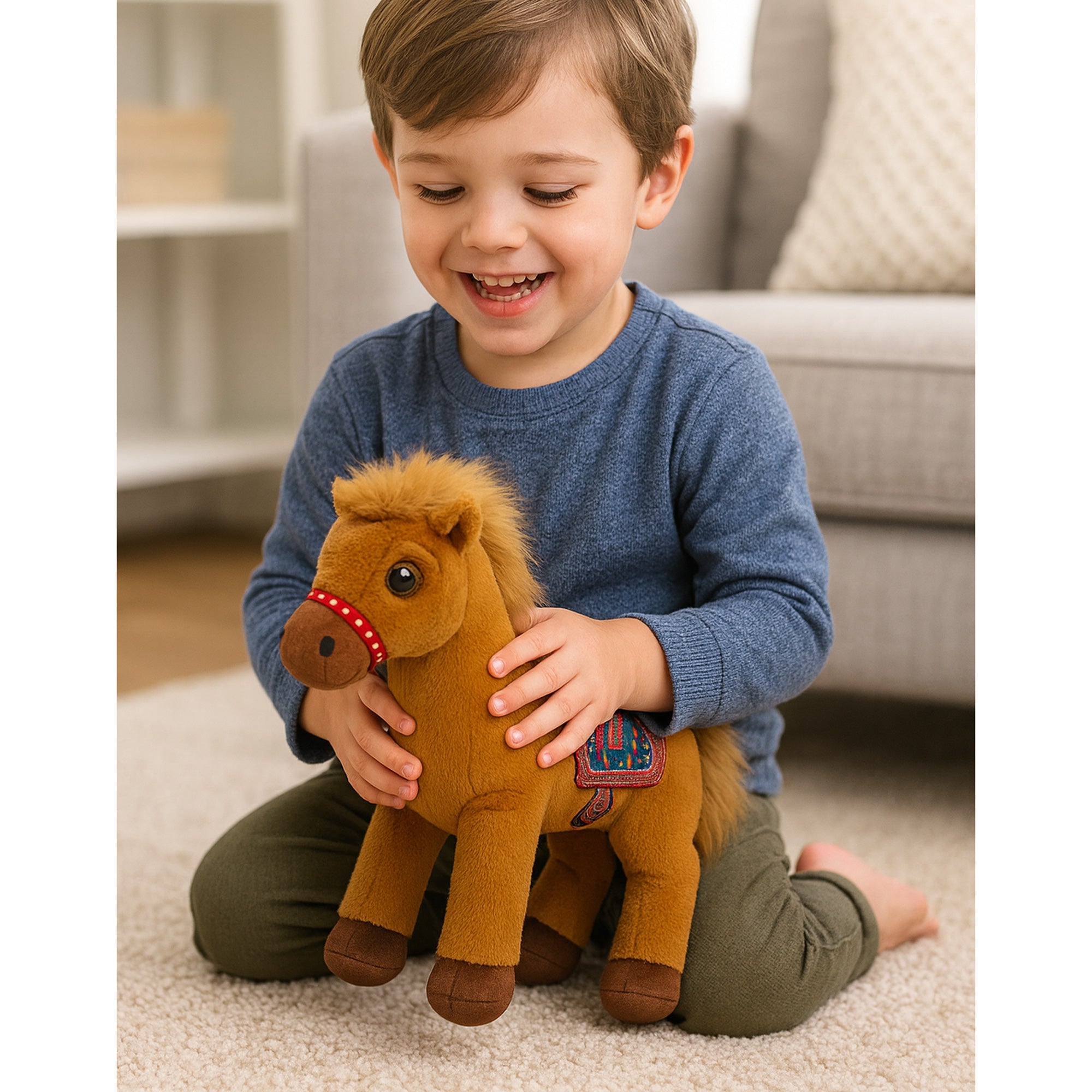 Przedstawiam uroczy pluszowy konik – idealny towarzysz zabaw dla każdego dziecka! Maskotka została wykonana z miękkiego, przyjemnego w dotyku pluszu, dzięki czemu jest doskonała do przytulania. Konik ma śliczną białą sierść, puszystą grzywę i ogon, a jego oczy są duże i błyszczące, co dodaje mu wyjątkowego uroku. Dodatkowo posiada kolorowe, haftowane siodło, które sprawia, że wygląda jak prawdziwy mały rumak. Wymiary maskotki: 35 × 30 cm Stabilne nóżki i staranne wykonanie pozwalają ustawić go w pozycji stojącej, co czyni go również świetną dekoracją dziecięcego pokoju. Najważniejsze cechy: - miękki, wysokiej jakości plusz - piękne detale: haftowane siodło, błyszczące oczy, ozdobna uzda - puszysta, biała grzywa i ogon - idealny do przytulania i zabawy - świetny pomysł na prezent dla małych miłośników zwierząt Ten uroczy konik z pewnością zdobędzie serce każdego dziecka! ?
