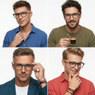 Przeznaczone do komputera męskie okulary zerówki ONYX redukują zmęczenie wzroku podczas pracy przed ekranem monitora lub smartfona. Czarne, prostokątne oprawki marki TITAN wykonano z połączenia poliwęglanu oraz drewna, zapewniając pełną i stabilną konstrukcję. Model posiada stałe noski, a jego ramki fabrycznie przystosowano do opcjonalnej wymiany szkieł na warianty korekcyjne.